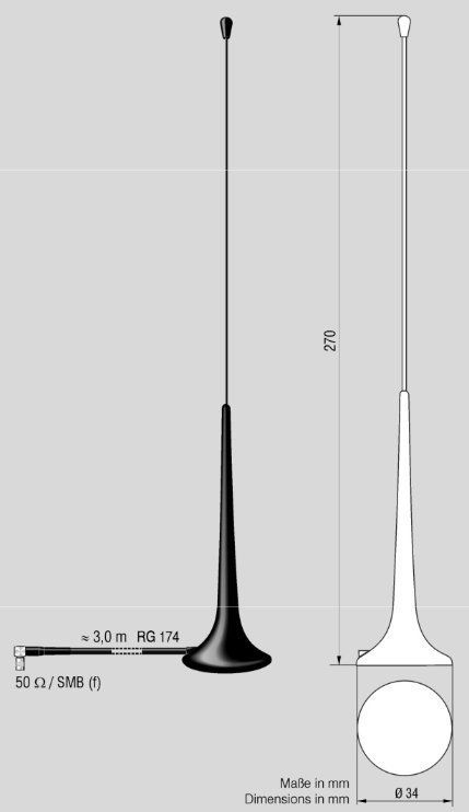 Als Referenzantenne empfehlen wir die Magnetfussantenne ATBB_4403_80 von Antennentechnik Bad Blankenburg. Diese Antenne wird zur Messung auf dem Fahrzeugdach über der Fahrer- oder Beifahrertür positioniert. Obwohl dies eine passive Antenne (ohne Verstärker) ist, ist sie im Kombination mit dem Metalldach des Fahrzeuges ein hervorragender Lamda/Viertel Strahler und liefert uns den entscheidenden Referenzwert.