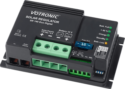 Serien-Regler-Technik (SR-Serie) und das technisch aufwändige Maximum-Power-Point-Regelverfahren (MPP-Serie). Die leistungsstarken Laderegler der SR- und MPP-Serie verfügen als Besonderheit über einen zusätzlichen Schaltausgang „AES“. Dieser steuert bei ausreichend großem Leistungsüberschuss der Solar-Module bei Absorber-Kühlschränken mit „AES“ die automatische Umschaltung von Gas- auf 12 V-Betrieb.