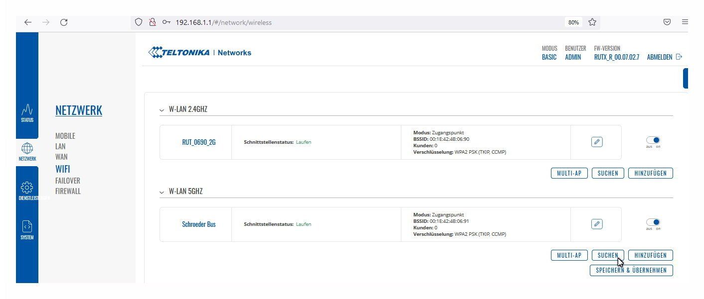 - dann auf bearbeiten. Sie sehen dort z.B. den Namen „RUT_0690_5G“. Diesen Namen können Sie ändern fast nach Belieben. Hier z..B. auf „Schröder Bus“