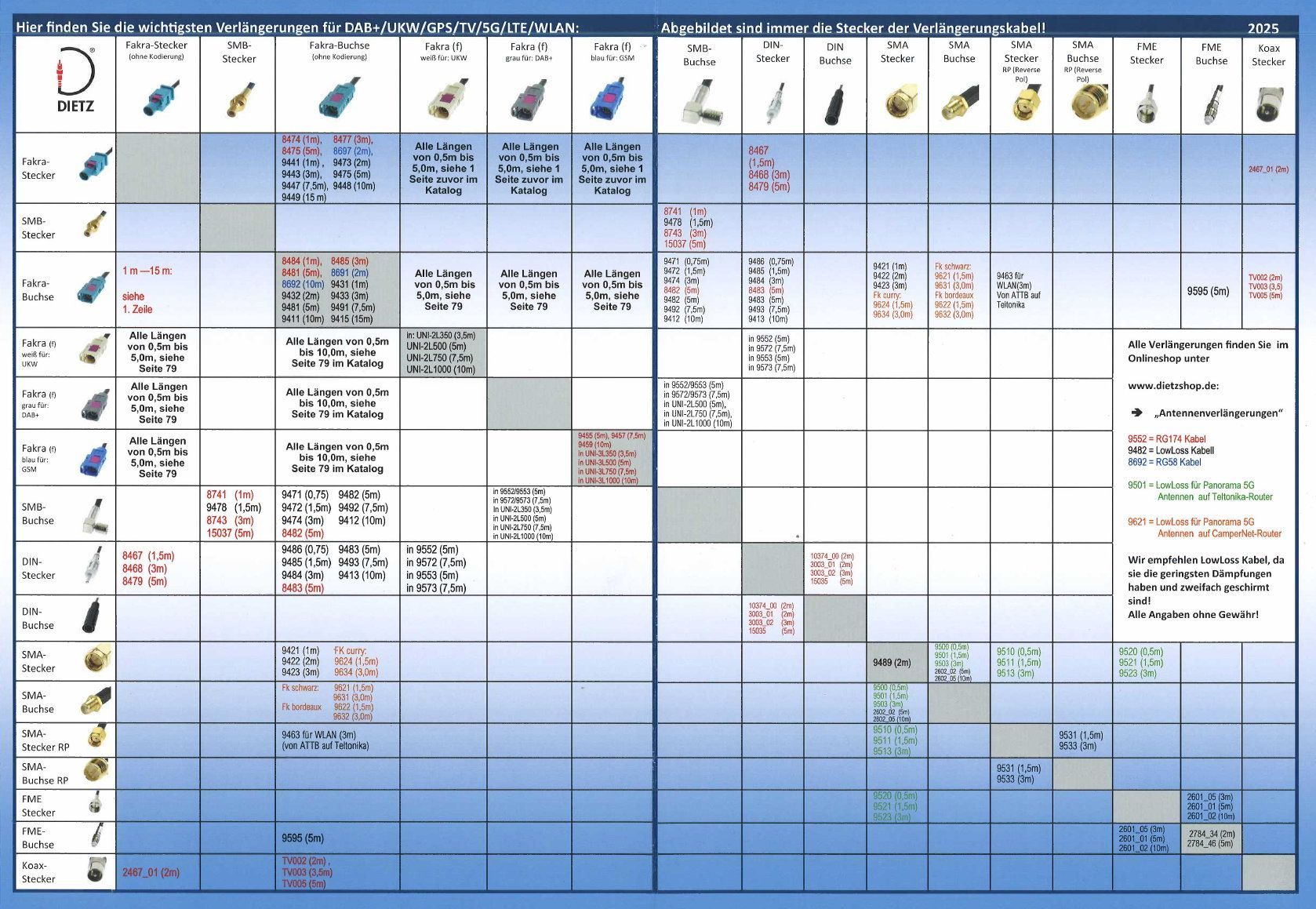 Wählen Sie ganz einfach das richtige Adapterkabel bzw. Verlängerungskabel mit Hilfe der Matrix.